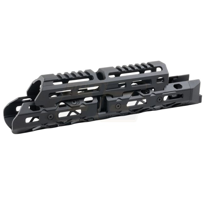 Le garde-main 5KU 1U020B apporte modularité moderne aux modèles AK classiques. Usiné CNC en aluminium avec rail Picatinny complet et interfaces M-LOK sur les côtés et dessous.