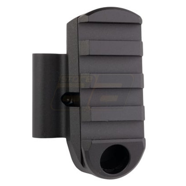 Ce adaptateur Picatinny Rail de 5KU est spécialement conçu pour la Tokyo Marui Saiga 12K GBB Shotgun. Il remplace la crosse d'origine par un adaptateur de rail Picatinny, offrant de meilleures options de personnalisation pour l'utilisation de crosses montées sur rail Picatinny de votre choix. L'adaptateur dispose d'une prise Quick Detach (QD) intégrée, permettant de fixer un support de sangle QD si votre crosse ne dispose pas d'options QD. De plus, vous pouvez continuer à utiliser le mécanisme de charnière pliable de la Saiga 12K, ce qui rend votre fusil de chasse plus compact lorsque cela est nécessaire.