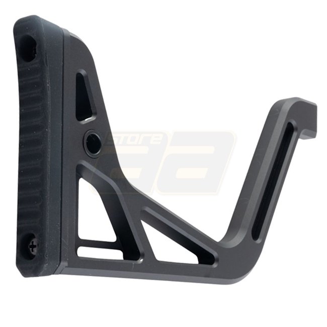 Cette crosse pliante en aluminium CNC adopte un design type visière, parfait pour les utilisateurs porteurs de casque. Elle se monte sur toute base de crosse Picatinny 1913 et se replie latéralement pour un transport compact. Le talon en caoutchouc absorbe le recul et les points QD ambidextres facilitent la fixation de sangle.