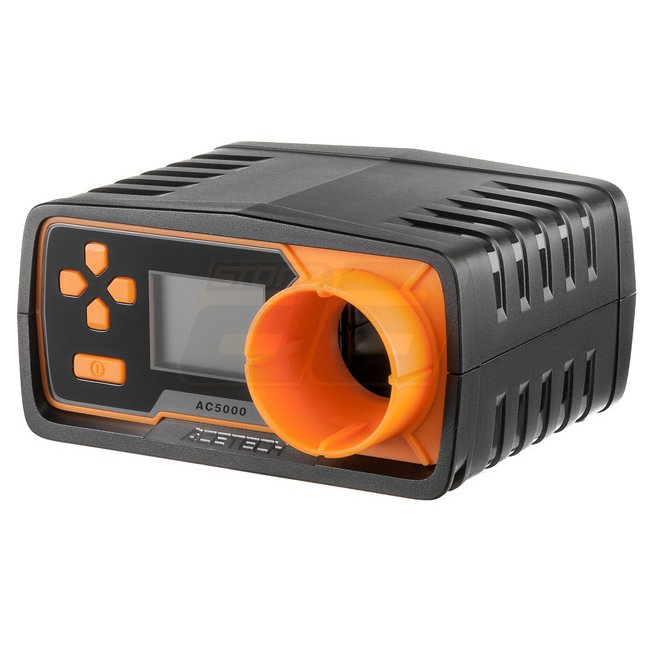 Chronographe ACETech AC5000 avec écran LCD de 128x64 pixels, montage prêt pour trépied, peut mesurer la vitesse (30 m/s - 400 m/s) et le taux de feu (100-5000 rpm). Alimenté par Micro-USB ou 2x piles AAA.