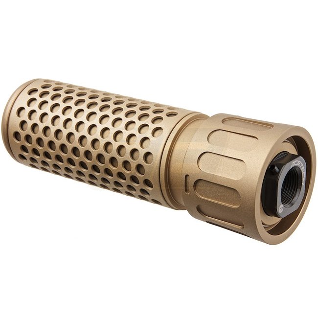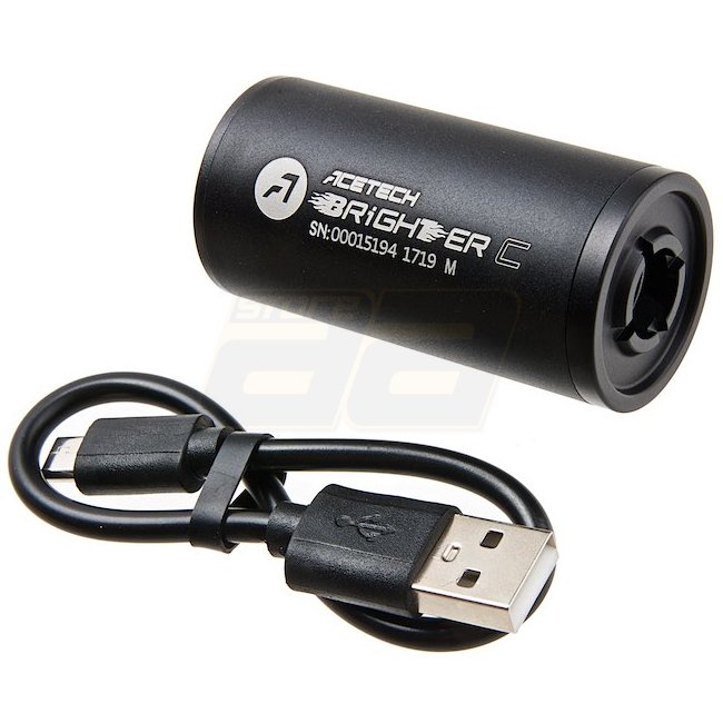 ACETech Predator Tracer Unit MK II - Tan. Compatible avec des billes vertes, filetage 14mm CCW et 11mm CW, batterie rechargeable, charge USB, longueur 57mm, diamètre 28mm.