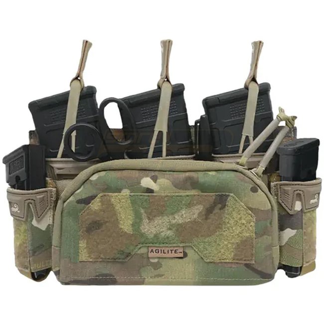 Rabat avec trois porte-chargeurs multi-calibres à tirage rapide avec une conception brevetée de puits de chargeur en entonnoir. Il peut contenir trois chargeurs de fusil AR15/M4, AK, SG55X etc. ou jusqu'à six chargeurs de pistolet étendus lorsqu'il est utilisé avec les séparateurs de chargeur inclus. Boucles MOLLE et G-hooks inclus.