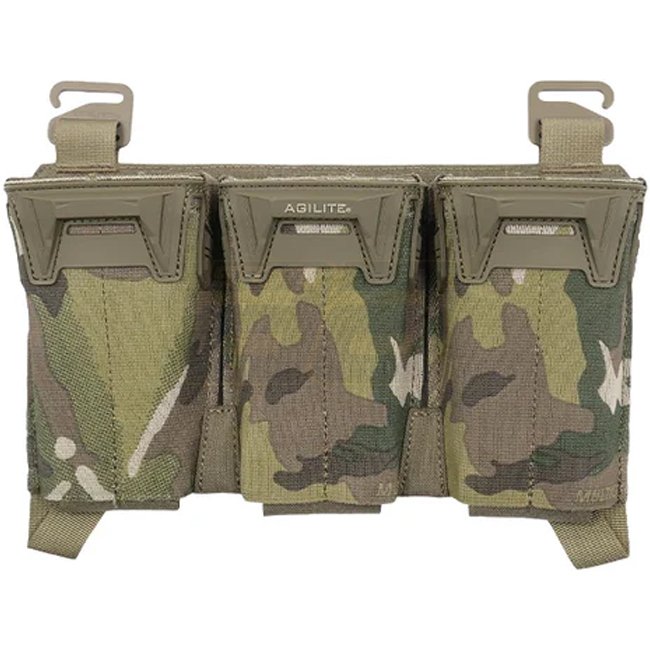 Pochette Triple Chargeur Multi-Calibre Agilite Pincer Placard - Multicam : Tirage rapide, design breveté de cheminée entonnoir pour chargeurs de fusils AR15/M4, AK, SG55X ou 6 chargeurs de pistolet étendus avec séparateurs de chargeurs. Boucles MOLLE, cro