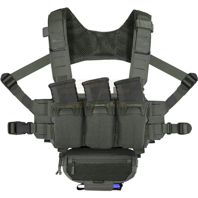 Le pack Agilite Reaper Rig Micro Rig en vert Ranger est un système de harnais de poitrine complet, léger et évolutif, conçu pour l'agilité et l'adaptabilité. Il comprend le Reaper Rig, le Pincer Placard Multi-Caliber Triple Mag Pouch, et le Six Pack Hange