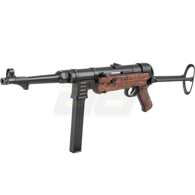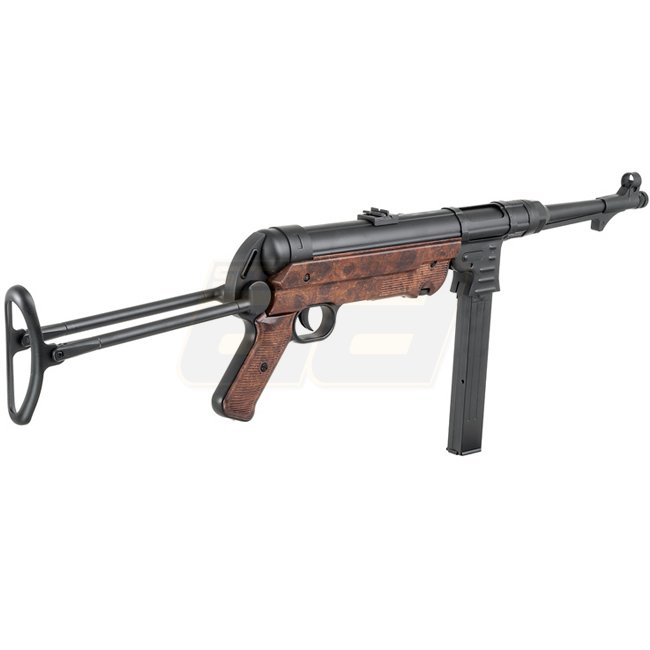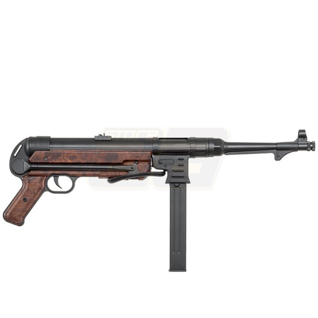 AGM MP40 AEG - Marron avec boîte de vitesses personnalisée, construction en métal, chargeur de 50 coups et portée de tir jusqu'à 46,65 m.