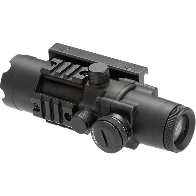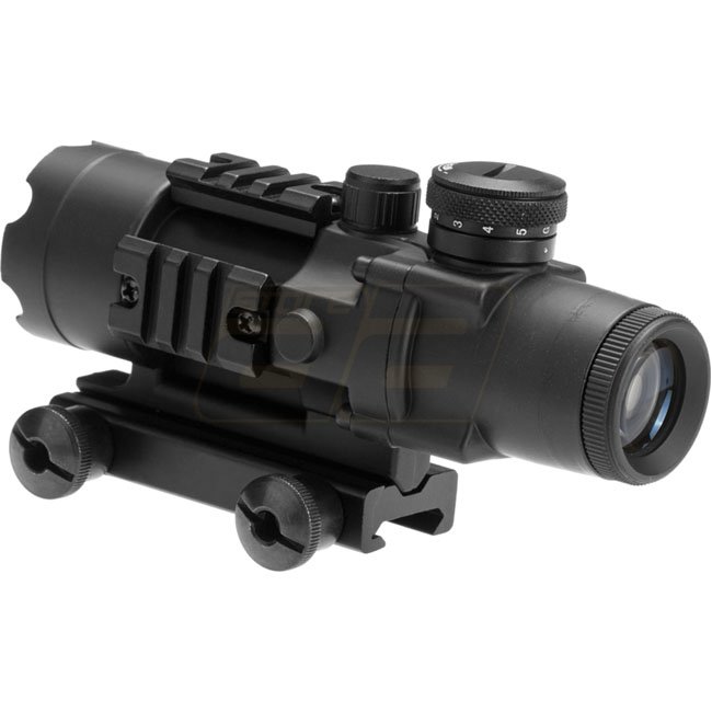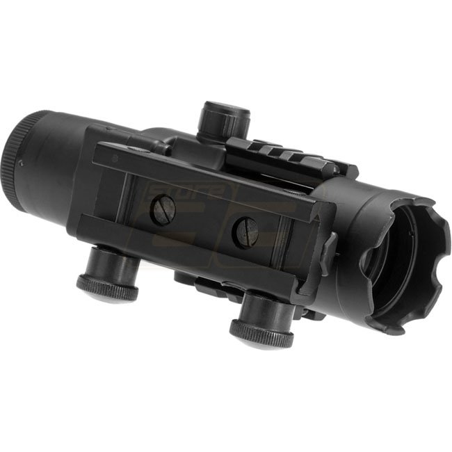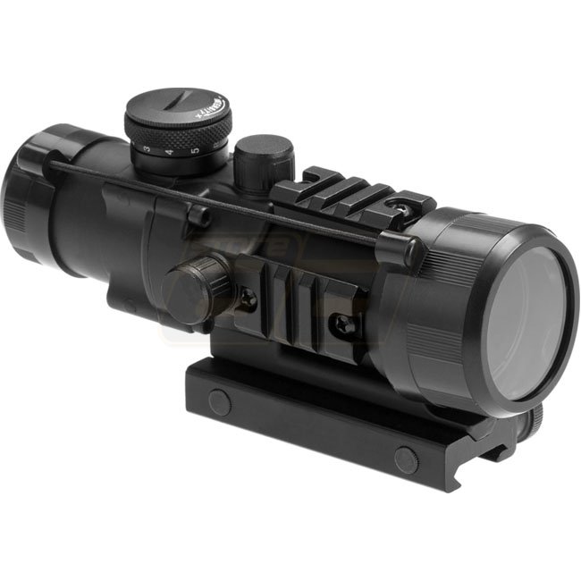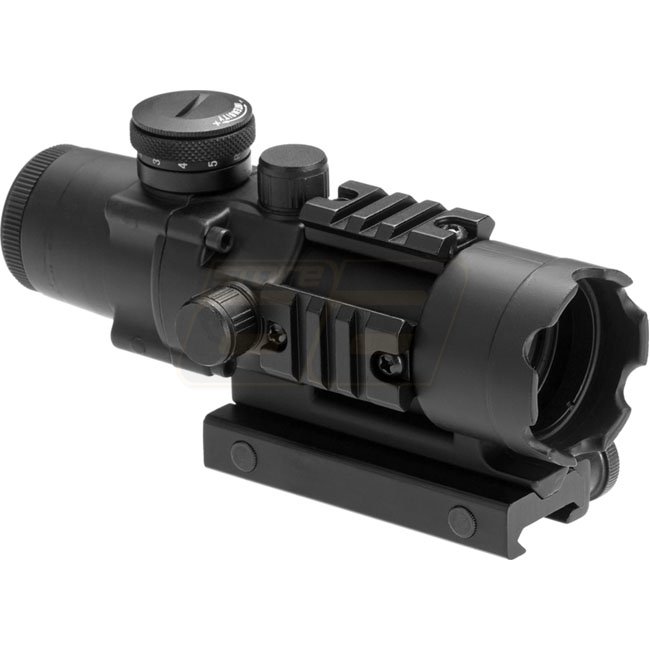 Aim-O 4x32IR Lunette de Tir Tactique - Noir. Améliorez votre précision avec cette lunette avancée. Son grossissement 4x et son réticule illuminé intégré la rendent idéale pour le tir tactique dans des conditions de faible luminosité. Finition noire durabl
