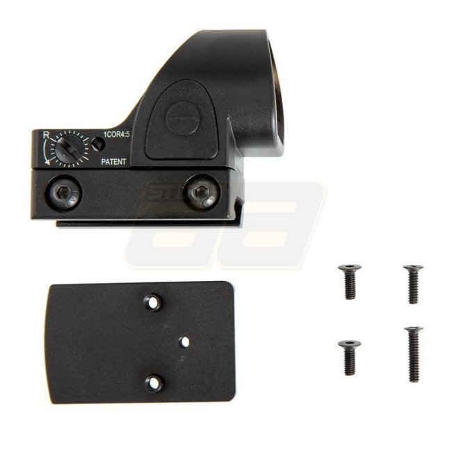 Viseur Point Rouge Aim-O SRO - Noir : Viseur point rouge compact avec un grossissement 1x, lentille de 30 mm, illumination rouge et réticule de point réglable. Idéal pour les pistolets de la série G.
