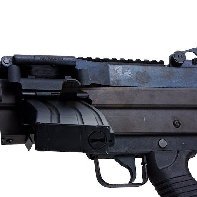 La version légère du A&K M249K LMG AEG est un fusil airsoft robuste avec une capacité de chargeur de 2000 billes, tirant à 350-370 FPS. Idéal pour le tir en automatique avec un hop-up réglable et la technologie MOSFET. Comprend un boîtier de vitesses et u