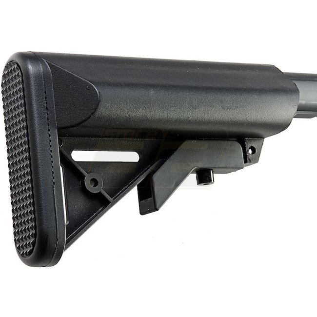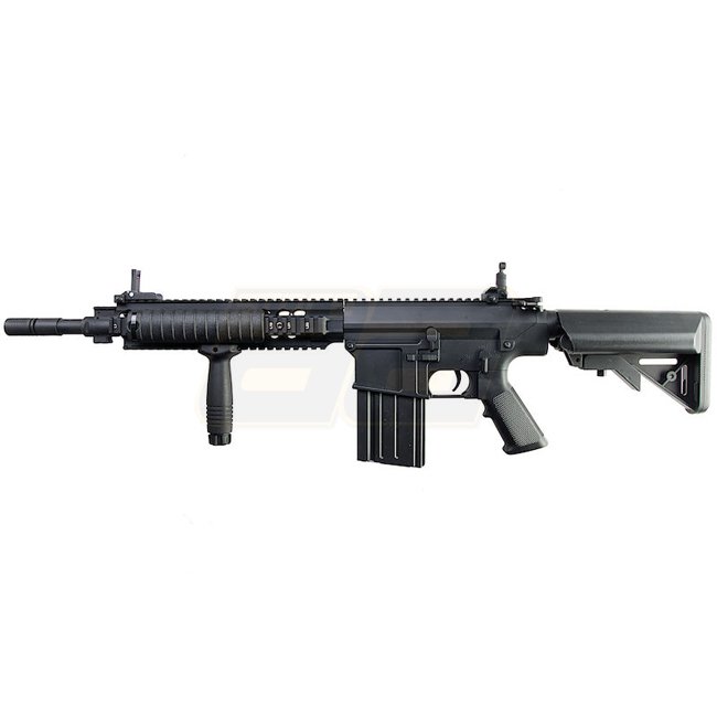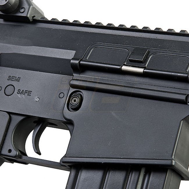 A&K SR-25 K AEG - Noir. Boîtier en métal, moteur de type long, capacité de chargeur de 450 billes, hop-up réglable et modes de tir : Semi-Auto et Full Auto. Le package comprend l'arme, le chargeur, 2x protège-rails et un silencieux.