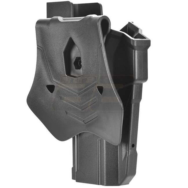 Le Amomax WE / TM / KJW Hi-Capa Compatible Red Dot Paddle Holster est spécialement conçu pour les joueurs d'airsoft utilisant des modèles Hi-Capa équipés de viseurs point rouge. Cet étui pour droitier garantit une rétention sécurisée, un accès rapide et une extraction fluide pendant les parties d'airsoft.
