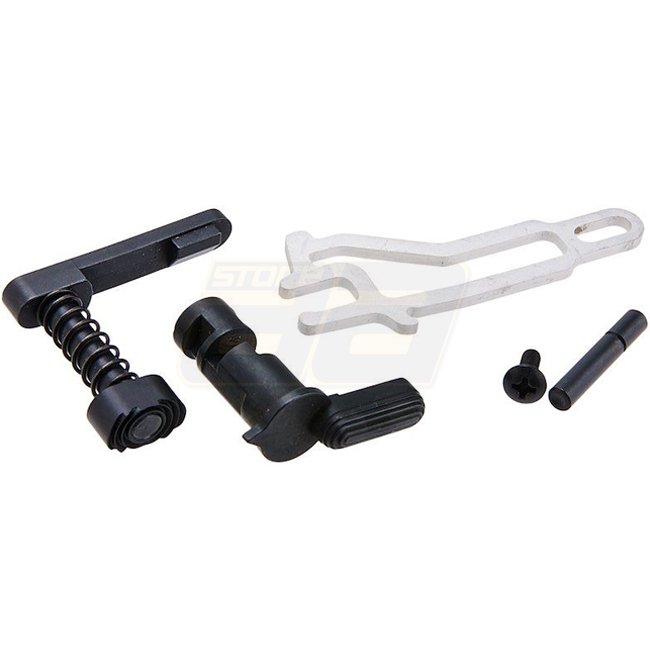 Un kit de mise à niveau pour Marui MWS M4 GBBR, le kit de gâchette à insertion Angry Gun et le kit de construction inférieur comprennent des pièces intérieures en acier inoxydable et des pièces en acier. Compatible avec les kits de libération de verrou am