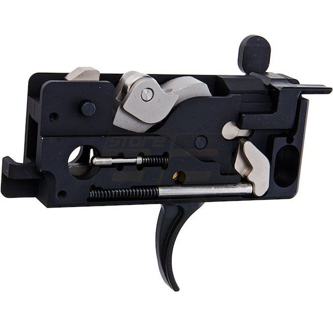 Le fonctionnement interne du groupe de déclenchement est en acier inoxydable, les pièces incluses dans l'ensemble (levier de sécurité, loquet magnétique, déverrouillage du boulon, plaque d'arrêt du boulon, vis et goupille) sont en acier.
