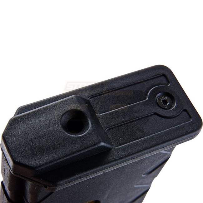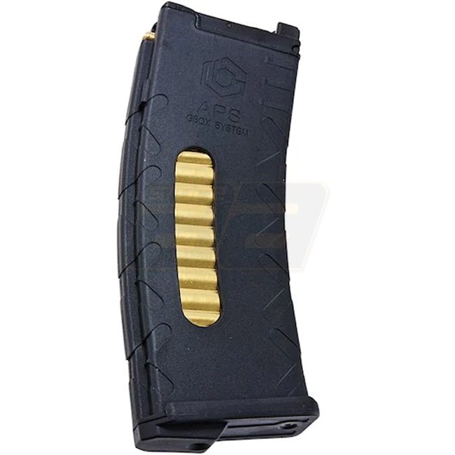 Chargeur Gaz APS M4 Gbox 36 coups de couleur noire, offrant une alimentation fiable et efficace pour votre fusil airsoft. Sa construction durable garantit des performances durables sur le terrain.