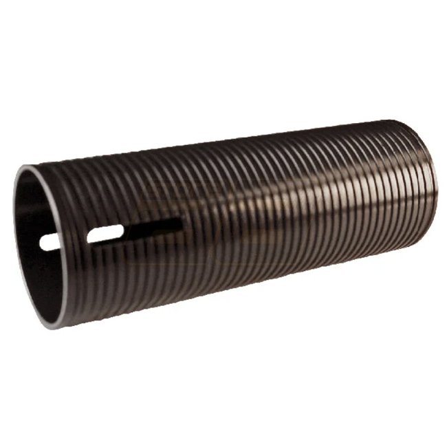 Le cylindre en aluminium T4 est conçu pour des configurations Airsoft avec des canons plus longs, particulièrement adapté pour des longueurs de canon de 430 mm et plus. Ce cylindre en aluminium de haute qualité dispose d'une coupe 7/8, assurant un flux d'air optimal pour les configurations de canons longs et garantissant une performance constante dans les configurations haute puissance.