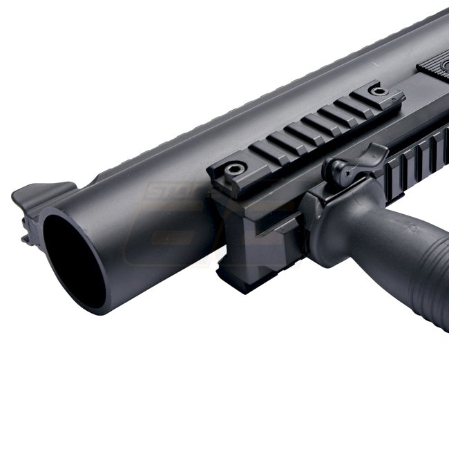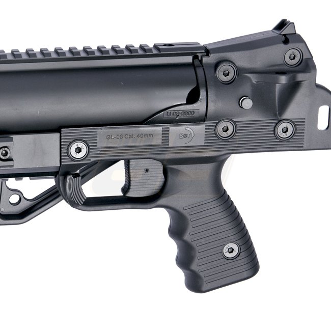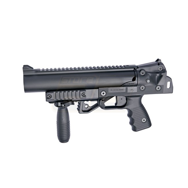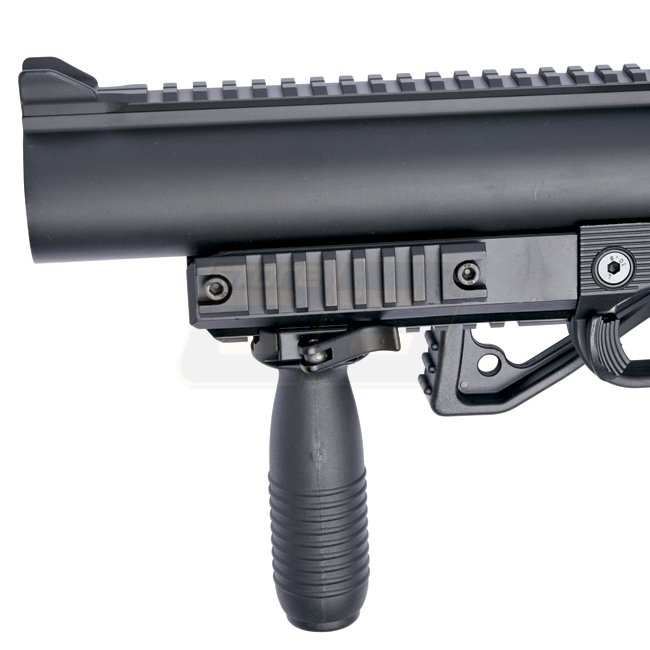 Le lance-grenades Ares B&T GL-06 de 40 mm est une option robuste et légère pour lancer des projectiles de 40 mm. Fabriqué en aluminium durable et en polymère renforcé de fibres, ce lanceur est compact à 382 mm mais peut s'étendre jusqu'à 590 mm pour une p