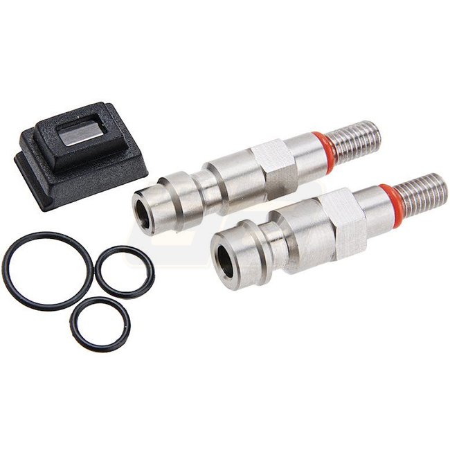 Cet adaptateur permet aux pistolets Marui Hi-Capa et aux marques de construction identiques d'être utilisés avec des systèmes HPA et des chargeurs M4 AEG. Livré avec deux adaptateurs HPA différents.