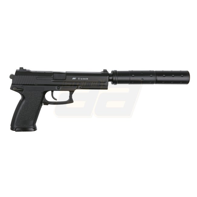 Le ASG MK23 NBB des opérations spéciales est un pistolet airsoft haute performance avec un silencieux amovible qui augmente la FPS de 30 à 50. Il dispose d'une construction durable en plastique ABS et métal, d'une capacité de chargeur de 28 et d'une porté