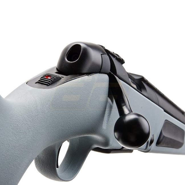 Fusil de sniper à ressort ASG Modify Steyr Arms Scout en gris. Caractéristiques : un cylindre en métal à haut volume, un guide de ressort de 9 mm, un bipied intégré et une détente à deux niveaux. Compatible avec les canons internes de tuning VSR-10 et les