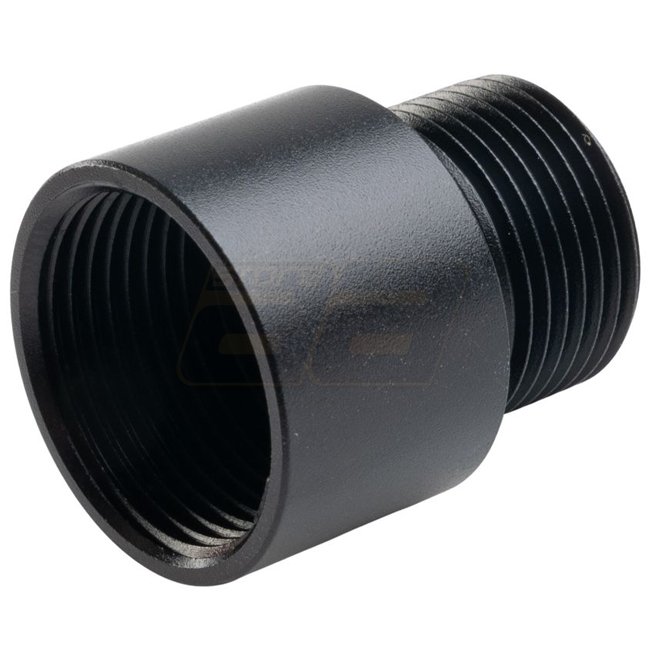 Ce convertisseur adapte un filetage de canon 16 mm CW en 14 mm CCW, compatible avec les accessoires CCW courants comme compensateurs, silencieux ou traceurs. Fabriqué en aluminium CNC léger et robuste, il est conçu pour répliques airsoft avec filetage 16 mm CW.
