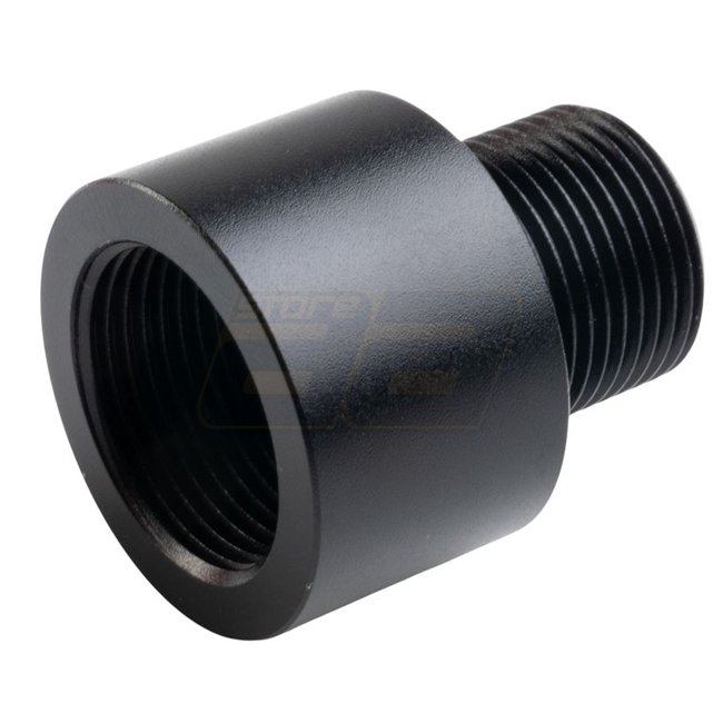 Ce convertisseur transforme un filetage de canon 16 mm CW en 14 mm CCW, compatible avec les accessoires CCW courants tels que compensateurs silencieux et traceurs. Il est fabriqué en aluminium CNC léger mais robuste, spécialement conçu pour répliques airsoft de type AK.