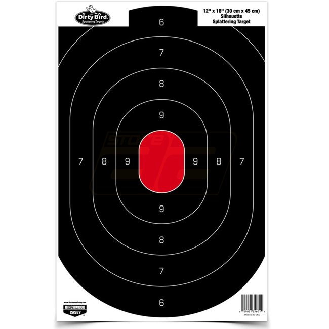 Ce pack de 8 cibles silhouette Birchwood Casey Dirty Bird présente un éclaboussement réactif à l'impact de la balle.