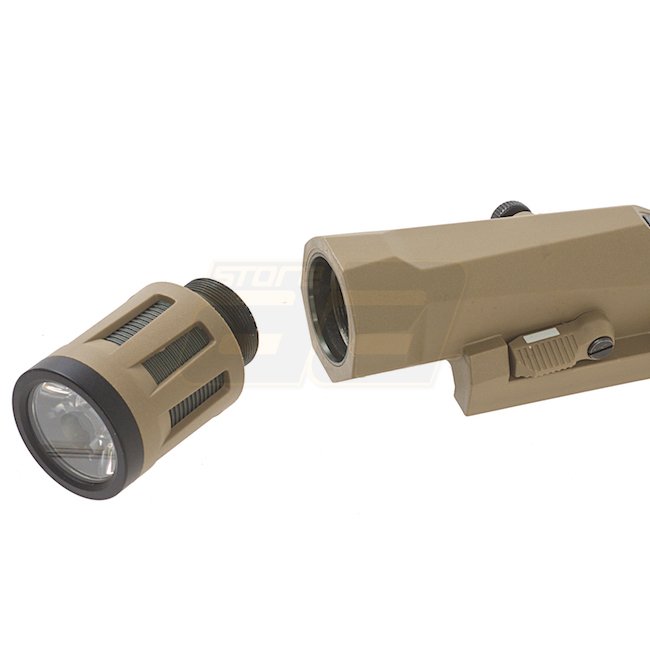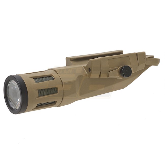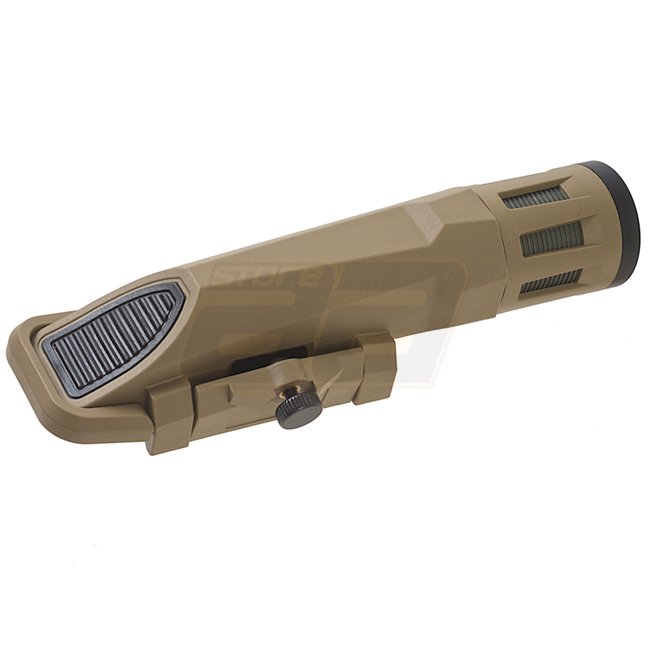 Blackcat WML Ultra-Compact Lampe d'Arme Longue - Tan, construction en polymère, sortie LED de 200 Lumens, modes constant et momentané, montage 20mm / MIL-STD-1913, interrupteur à pression avec support de verrouillage.