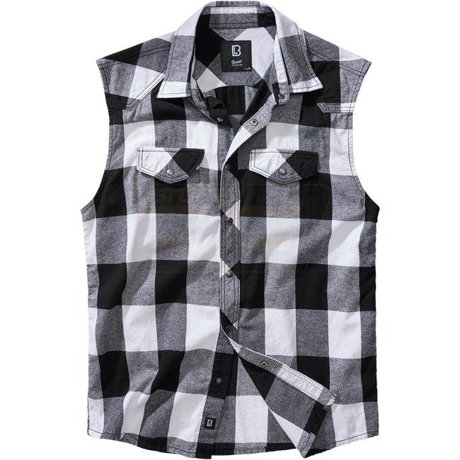 Brandit Checkshirt Sleeveless - White / Black - L