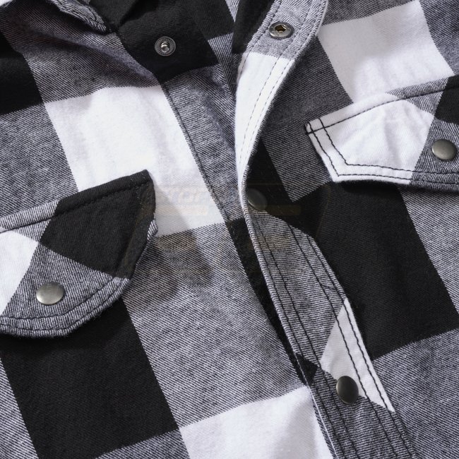 Une chemise à carreaux sans manches blanche et noire élégante et confortable de Brandit. Fabriquée en coton doux pour la peau, avec deux poches de poitrine et un look de bûcheron.