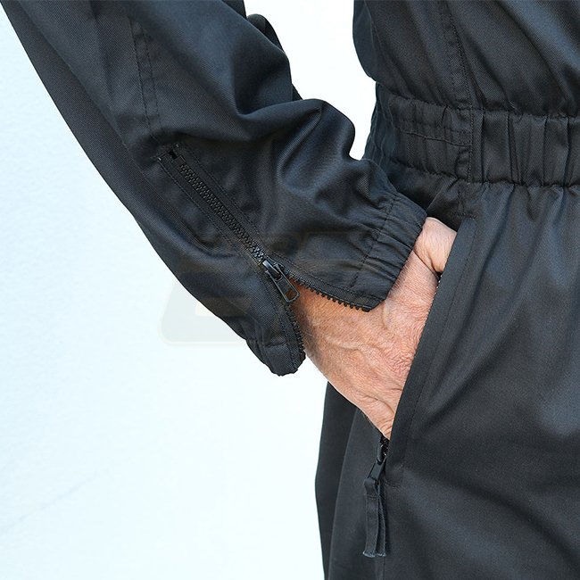Combinaison de combat Brandit - Noir - M: Combinaison polyvalente avec des zips durables, plusieurs poches, taille élastique, poignets et ourlet. Patch en Velcro sur la poitrine. Fabriqué en matériau robuste et facile à entretenir.