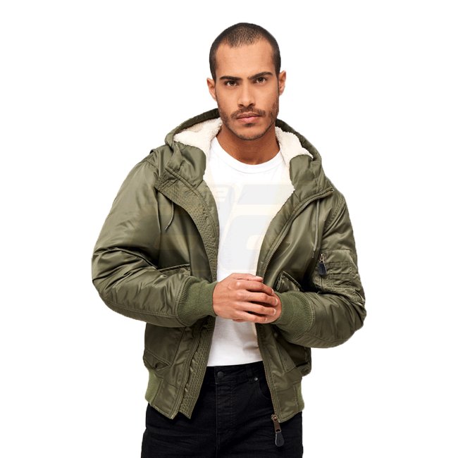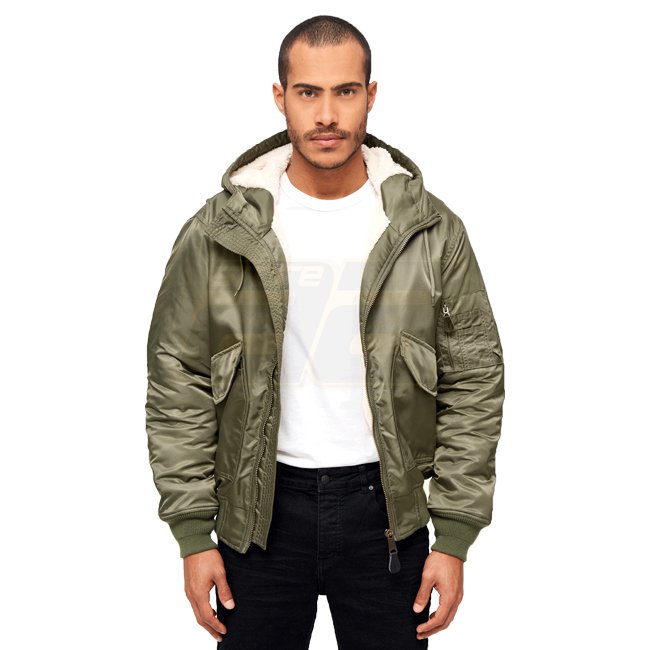 Restez au chaud et tendance avec cette veste Olive Brandit CWU avec capuche. Déperlant et fabriqué en nylon durable, elle est dotée d'un doublure en fourrure teddy, d'une capuche à cordon, de poignets côtelés, de multiples poches et d'un design tendance.
