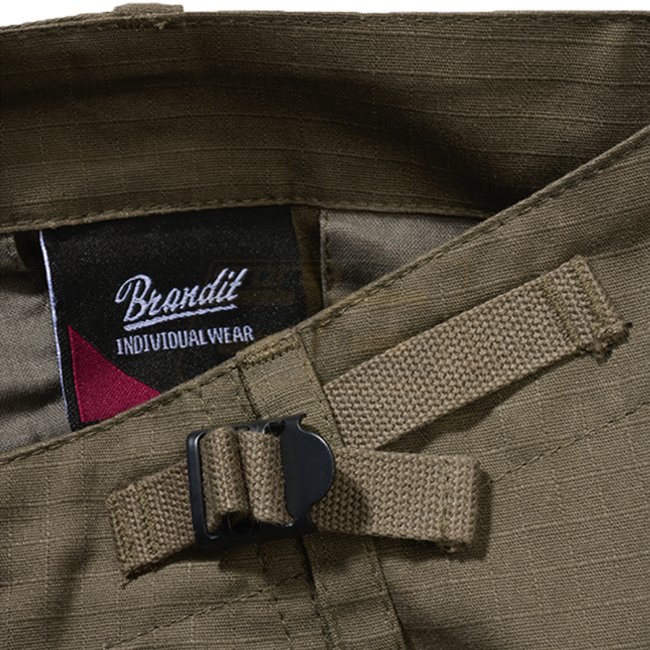 Pantalon ripstop déperlant Brandit pour femmes - Olive - 31 : Pantalon ripstop avec taille ajustable, genoux et dos renforcés, multiples poches et extrémités des jambes à cordon de serrage.
