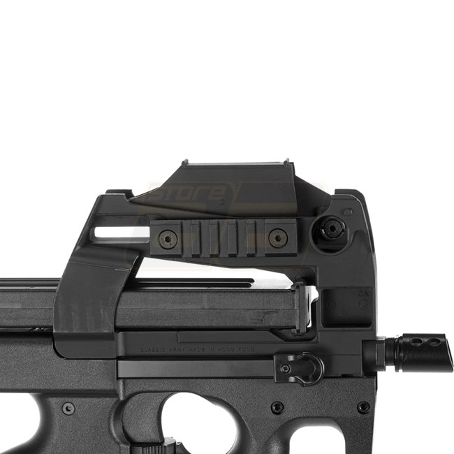 Le Classic Army CA90 AEG est une réplique d'airsoft de haute qualité, dotée d'un corps en plastique avec des accessoires en métal. Il a une capacité de chargeur de 200 billes, une longueur variant de 530 mm à 675 mm et un poids de 2800 g. Cet AEG offre à