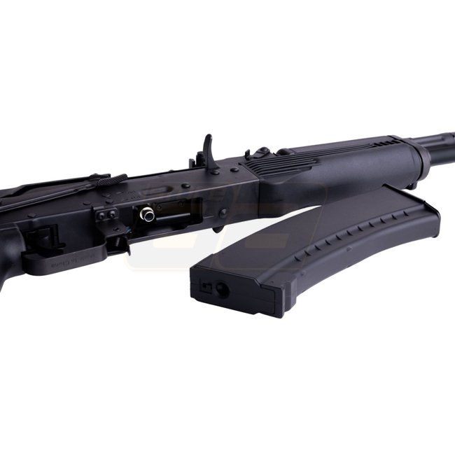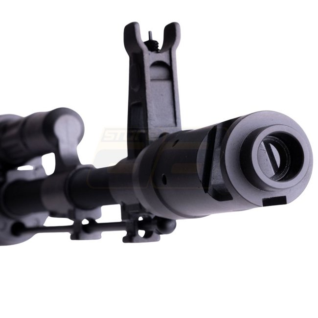 Le Cyma AK74M AEG allie qualité de fabrication exceptionnelle et fiabilité à un prix abordable. Principalement en acier avec une poignée et un garde-main en polymère, ce fusil airsoft reproduit la durabilité des AK réels. Inspiré du fusil de parachutiste AKS74M, il est équipé d'une crosse pliable, d'un chargeur mid capacité de 150 billes et d'un outil de réglage de mire avant. Grâce à des améliorations internes préinstallées telles que l'E-Shooter ETU et un moteur haute vitesse, il atteint 25 RPS dès sa sortie de boîte.
