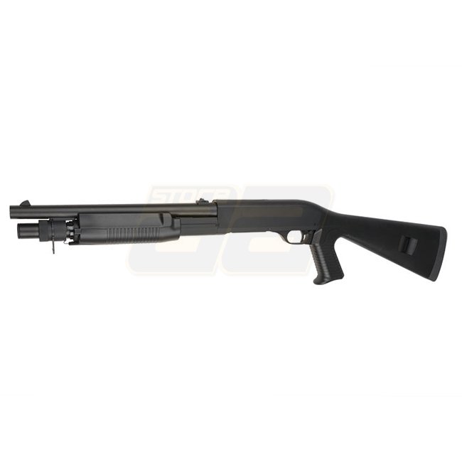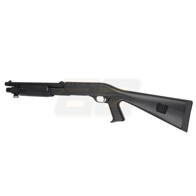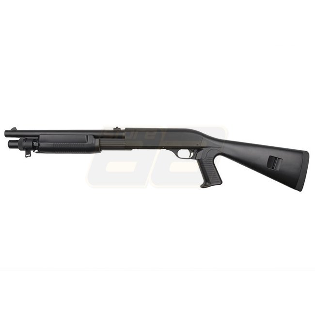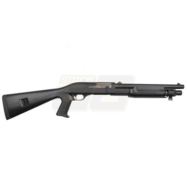 Fusil à pompe en métal Cyma CM360M à 3 coups, capacité du chargeur de 30 billes (6mm), longueur de 900mm, poids de 2510g, vitesse à la bouche de 280-300 FPS / 0.73-0.84 Joule, mode de tir manuel, portée de tir de 38.41-41.16m, Hop Up fixe, le package comp