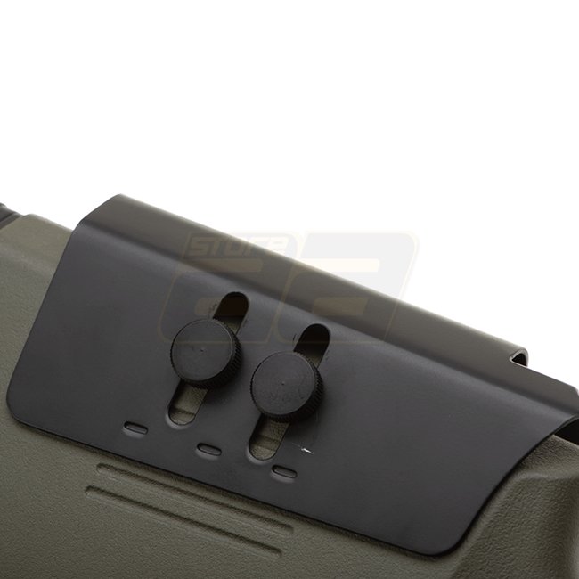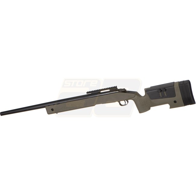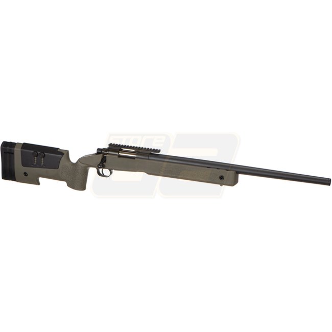 Fusil de sniper à ressort Cyma CM700 M40A3 - Olive, arme airsoft en métal de haute qualité avec crosse en polymer. Caractéristiques : chargeur de 30 billes, longueur de 1130 mm, poids de 3700 g, canon interne de 455 mm, et hop-up réglable. Tire à 530-550
