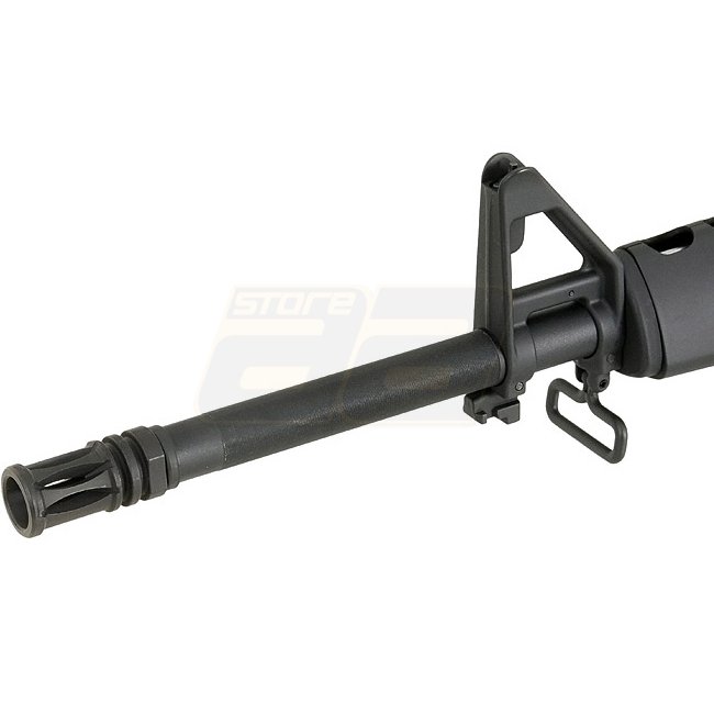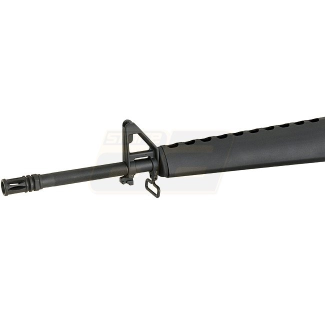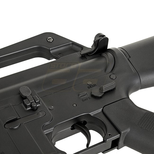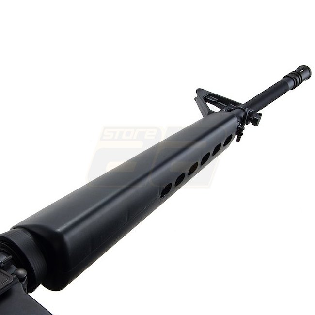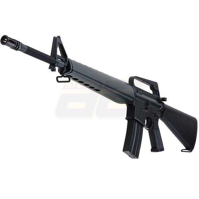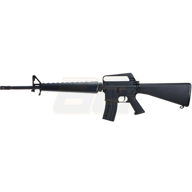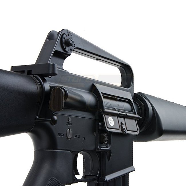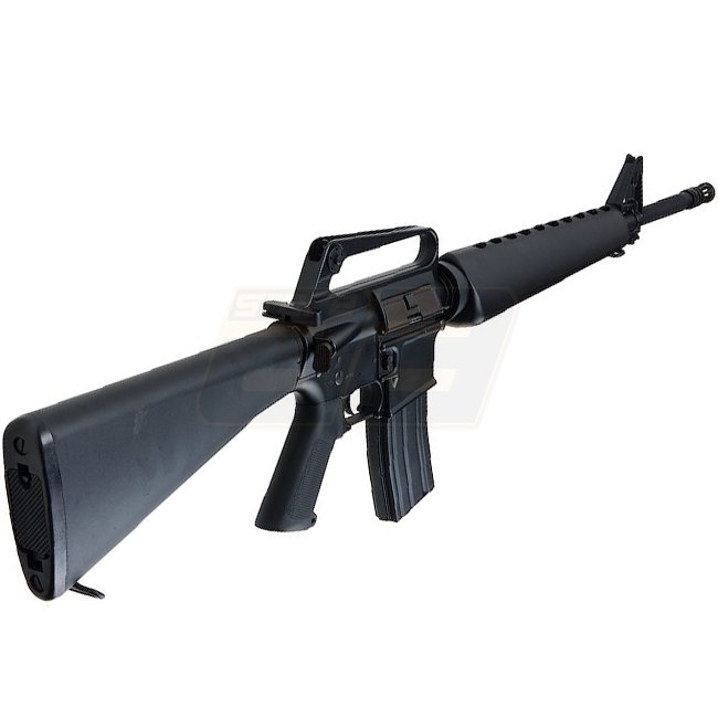 Un AEG M16A1 de haute qualité de couleur noire élégante, équipé d'un boîtier de vitesse Version 2 et utilisant un moteur de type long. Convient pour les modes de tir semi-automatique et automatique avec un hop-up réglable. Livré avec un chargeur de 300 bi