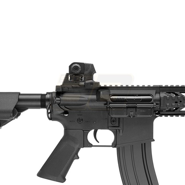 Cyma M4 CQB CM617 AEG - Noir. Gearbox : Version 2, Matériau : Polymer, Capacité du chargeur : 300 (6mm), Longueur : 700-780mm, Poids : 2200g, Vitesse de sortie : 400-420 FPS, Mode de tir : Semi-auto et Auto complet. Comprend le fusil et le chargeur.