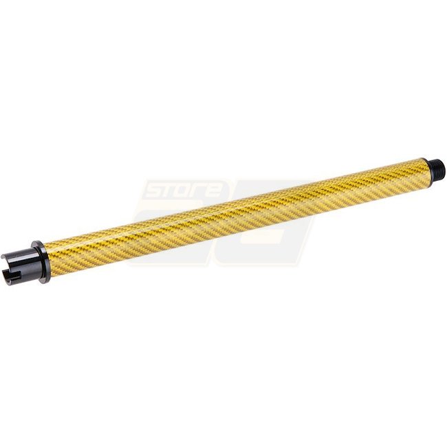 Amélioration élégante pour Marui MWS GBBR avec un canon externe en fibre de carbone de 10,5" dans une finition dorée frappante, alliant durabilité et style.