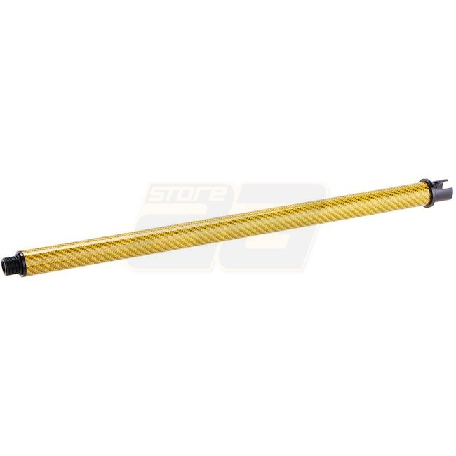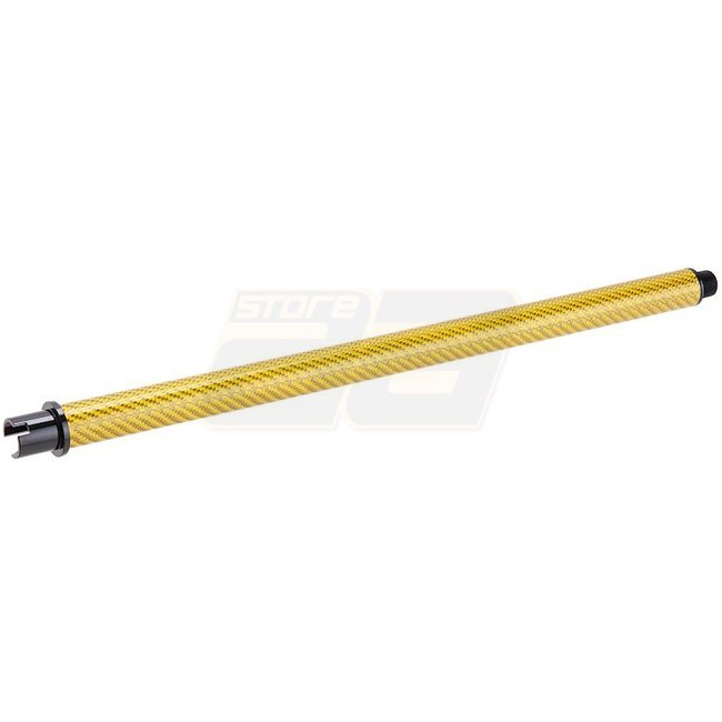 Améliorez votre Marui MWS GBBR avec ce canon externe en fibre de carbone ultraléger de 14 pouces avec une finition dorée élégante. Améliorez les performances et le style avec cet accessoire durable et léger.