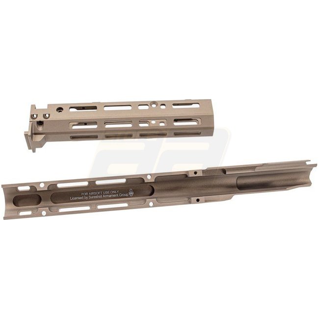 Améliorez votre jeu d'airsoft avec le châssis premium Dytac SAG Marui AKM AKX GBBR P.T.D. RU Ver MK3. La finition Cerakote H-148 Bronze apporte durabilité et style à un niveau supérieur. Dominez le terrain avec style!
