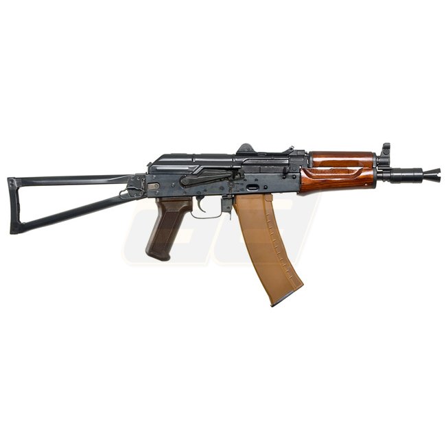 E&L AK-74U Gen.2 AEG avec construction en acier / bois, 370-390 FPS, semi-automatique et automatique, et hop-up réglable. Boîte de vitesses : Version 3, moteur : type court. Longueur : 606 / 741mm, poids : 3190g. Capacité du chargeur : 120 (6mm). L'emball