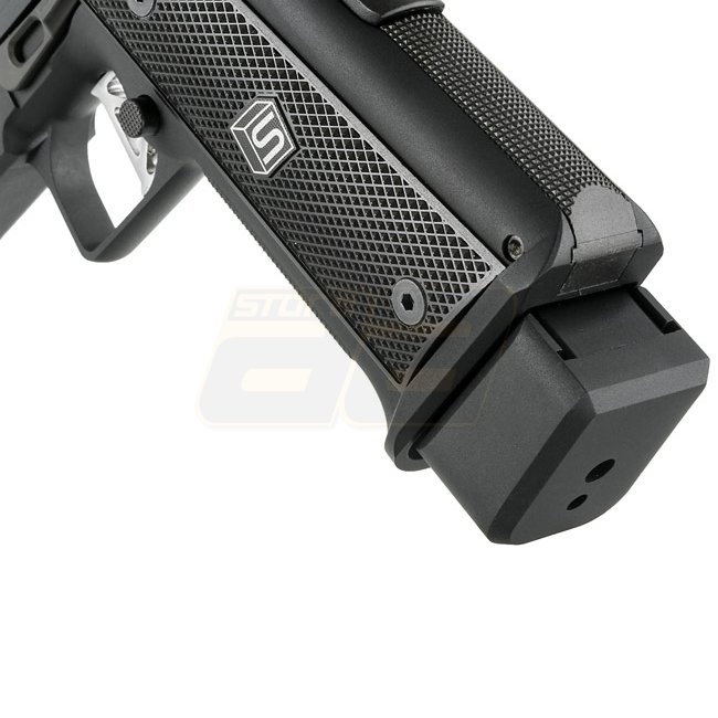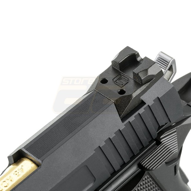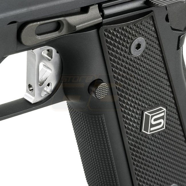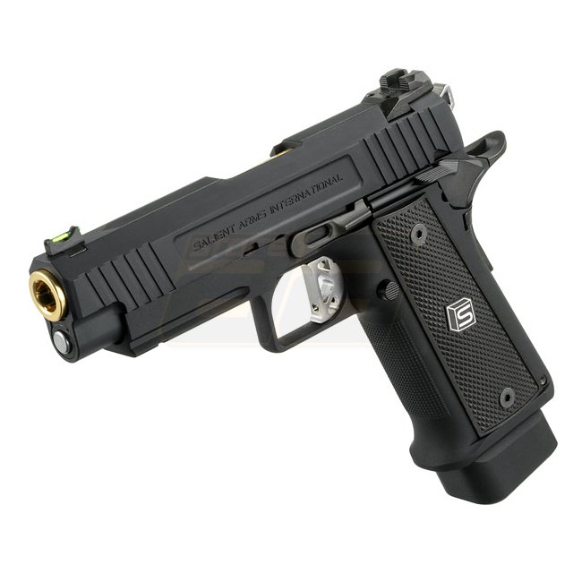 Pistolet à gaz Blow Back EMG SAI 4.3 - Noir : Pistolet Hi-Capa sous licence EMG Salient Arms International, poignée en métal/plastique, capacité du chargeur de 29 billes, longueur de 198 mm, poids de 995 g, rail Picatinny, 330-350 FPS, semi-automatique, h