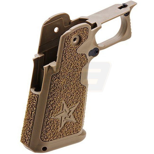 Cet EMG Staccato 2011 Hi-Capa GBB Pistol Grip de couleur terre sombre est conçu pour les pistolets à gaz à recul EMG 2011 et Marui Hi-Capa 5.1.