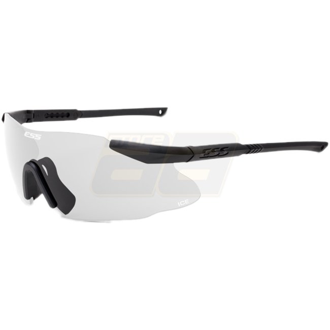 ESS ICE-ONE Clear - Noir : Conforme aux spécifications militaires américaines MIL-PRF-31013, ANSI Z87.1?2015, CE EN 166 et OSHA fédéral américain. Protection 100 % UVA/UVB. Poids : 29g.