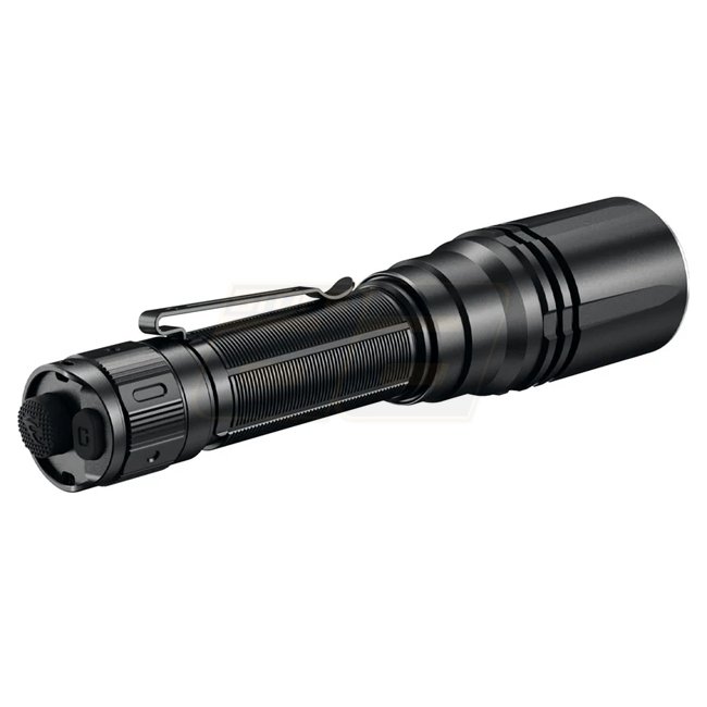 La Fenix HT30R utilise la technologie laser blanc LEP (Classe 1) pour créer un faisceau très concentré avec peu de diffusion. Avec une puissance maximale de 500 lumens, elle atteint jusqu’à 1 500 mètres. Alimentée par une batterie 21700 de 5 000 mAh incluse, la recharge s’effectue via un port USB‑C dissimulé dans la tête.