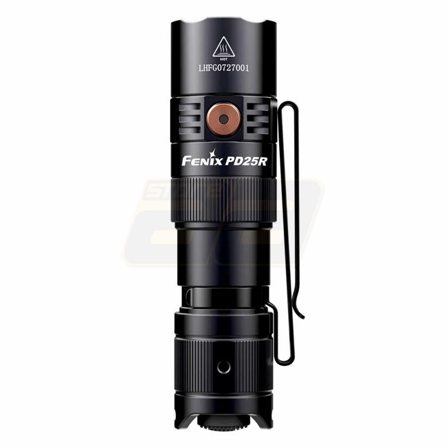 La Fenix PD25R délivre jusqu’à 800 lumens avec une portée de 250 m. Elle est alimentée par une batterie 16340 Li‑Ion fournie ou une CR123A en option. La recharge s’effectue via un port USB‑C dissimulé. Les interrupteurs latéral et arrière permettent l’activation instantanée / constante et le choix de six modes. Elle bénéficie d’un indice IP68 pour l’étanchéité et la protection contre la poussière.