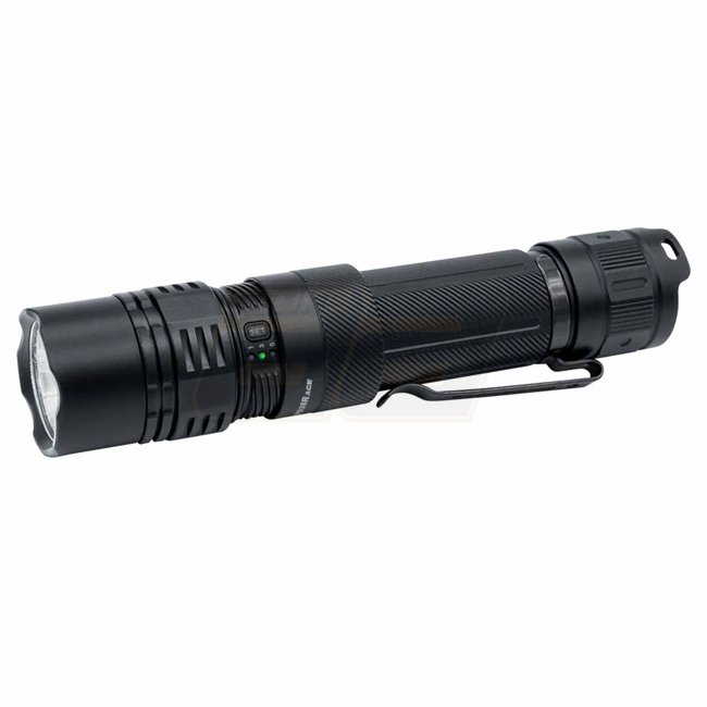 La Fenix PD36R ACE offre une intensité maximale de 3.000 lumens et une portée de 415 mètres. Elle dispose d’un bouton SET dissimulé dans la tête permettant de choisir entre trois profils de fonctionnement (Turbo seul, Eco‑Med‑Turbo ou mode complet). Elle fonctionne avec une batterie 21700 de 5.000 mAh rechargeable via un port USB‑C dissimulé.