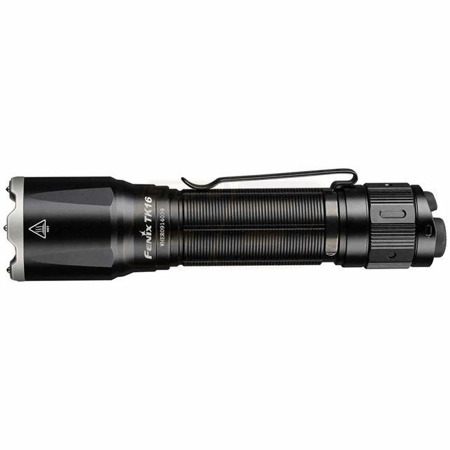 La Fenix TK16 V2.0 délivre jusqu’à 3 100 lumens avec une portée de 380 mètres. Elle utilise une batterie 21700 Li‑Ion avec recharge USB‑C intégrée et possède deux interrupteurs à l’arrière pour un accès rapide et le choix des modes.