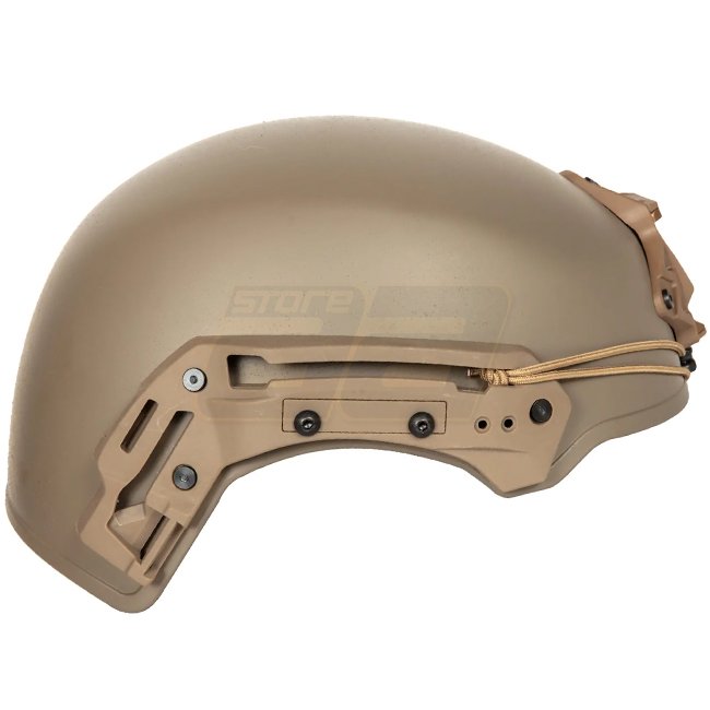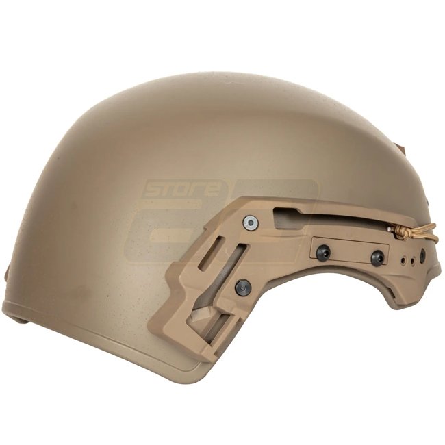 Casque de style balistique FMA EX en couleur Terre Foncée. Fabriqué à partir de plastique ABS durable de 5,5 mm, offrant une résistance aux impacts ainsi qu'une résistance à la chaleur et aux basses températures. Convient aux tailles de tête de 57 à 61 cm