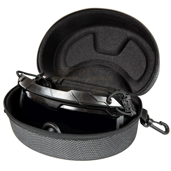 Lunettes tactiques à profil bas en plastique et caoutchouc durables. L'utilisation d'un double vitrage et d'un collier en caoutchouc a un effet positif sur la ventilation. En plus de la bande standard, les lunettes sont livrées avec un ensemble d'adaptateurs de casque.